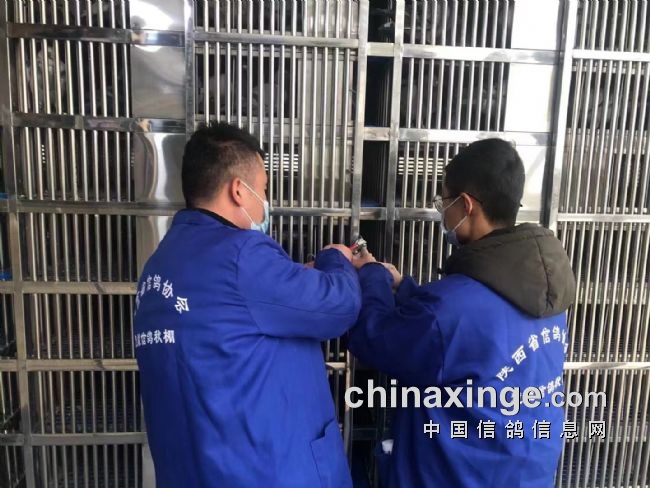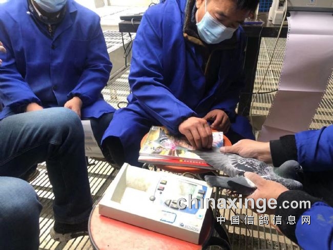 集鸽工作从12:45分时起,至15:54分结束,经逐羽检查足环,核对羽色,通过扫描电子环,确认鸽主信息,盖暗章,一切无误后入笼注册,打印资料,公布信息。最后确认,本次比赛上笼参赛鸽1822羽(去年第五关加站赛集鸽在1月11日,今年提前了16天,集鸽羽数比去年的861羽,多了961羽,多出了一倍多),今年取得了长足的进步,证明赛鸽饲养科学管理到位,鸽子体魄坚强,对于打好每一关比赛奠定了良好基础。