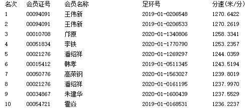 第一名:王伟新 00094091 足环号0206548 分速1270.6422