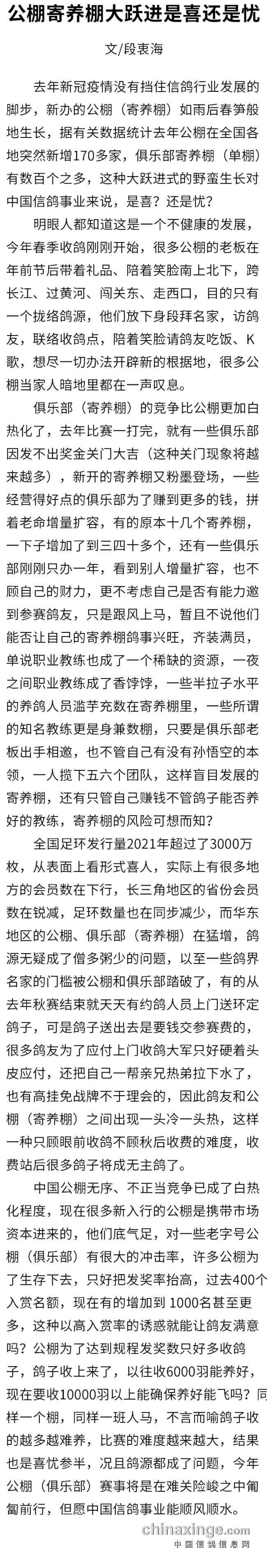 文章内容明白还要模棱两可的设题目?皮毛现象,实质是不养的人为私利领导,养的人忽悠,鼓动鸽界职业*。