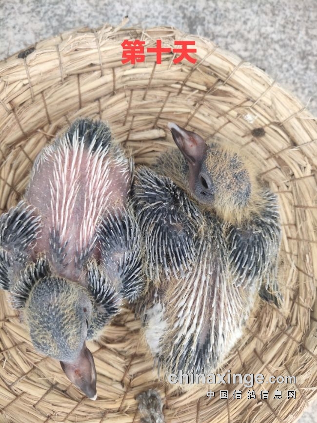 为啥有一只没有毛呢?今天第18天,早晨起床一看全都出来了,这应该算夹窝蛋吧,上窝小鸽子18天下蛋,到今天上窝鸽子才38天,被逼的21天就开始自己吃食了。