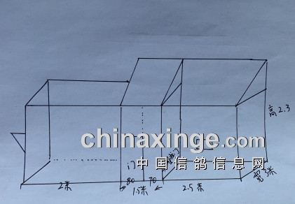 当晚就开始规划怎么搭比较合适,隔天还去老哥家问怎么搭建比较合适。他画了个图给我(图二)让我参考一下,我想也没想,就开始采购材料。历经两天,终于把鸽棚搭起来(图三、图四、图五)算是比较简单的那种。