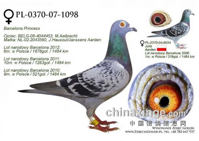 答案揭晓!看到评论区中依旧有不少的鸽友,准确的指出超远程冠军鸽,就是图一的赛鸽,这羽赛鸽是2013年巴塞罗那大赛波兰全国冠军鸽,其鸽主为Lepuch.l.k.d。波兰是巴塞罗那大赛唯一一个赛程达到超远程级别的国家,参赛羽数虽然不多,但取得非常好的成绩。此次比赛,这羽冠军鸽飞了8天才归巢,飞行空距1484公里。