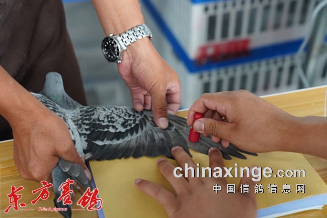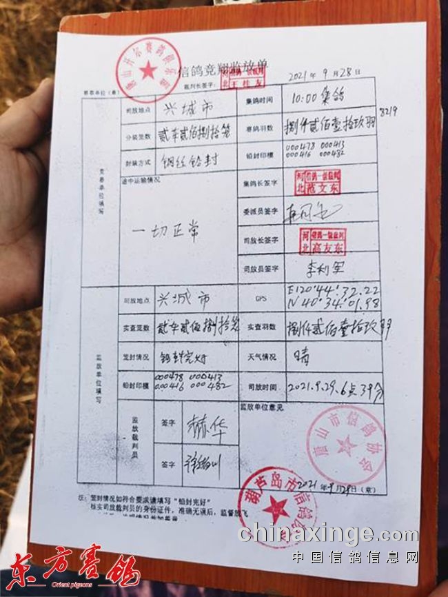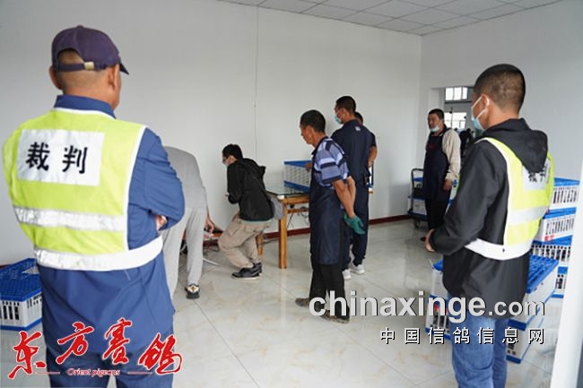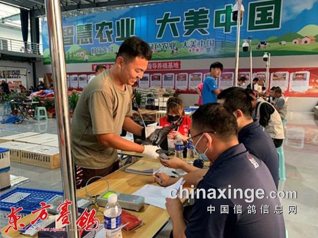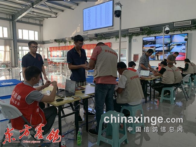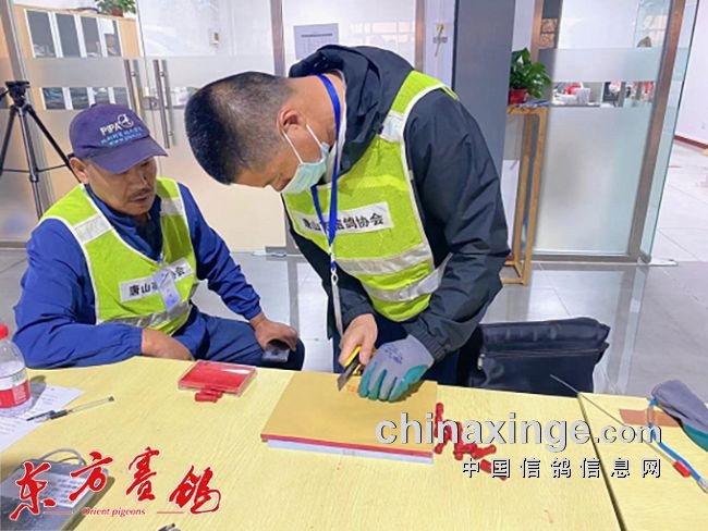 9月28日上午10点,集鸽工作在开尔赛鸽俱乐部办公区一层大厅准时开始,唐山市信鸽协会委派裁判组对集鸽过程全程执裁。参赛团队在办公区门口处领取集鸽号码牌,按照顺序依次进入集鸽大厅到电脑处打印集鸽清单。大厅内设12个扫描点,经验丰富的工作人员按照扫描赛鸽足环、核对集鸽清单、加盖翅膀暗章、佩戴GPS定位足环、密封贴封环的步骤一丝不苟进行集鸽。集鸽完毕后,参赛团队将鸽钟交到电脑处进行刷钟。经过紧张有序的工作,整个集鸽活动于下午6点圆满结束,共有63舍的8219羽赛鸽上笼。之后裁判组销毁暗章,对放飞车进行铅封。晚上20点整,2辆载满参赛鸽的赛鸽车、1辆备用空放飞车和5辆安保车浩浩荡荡奔赴司放地。