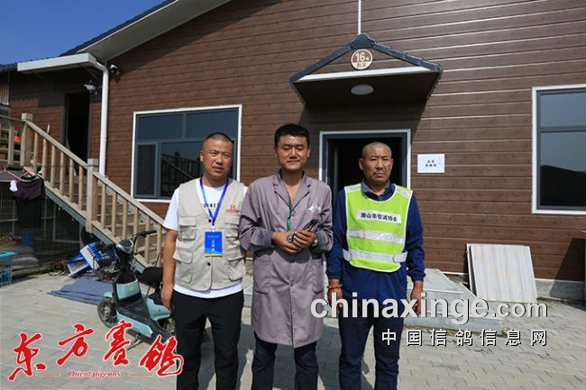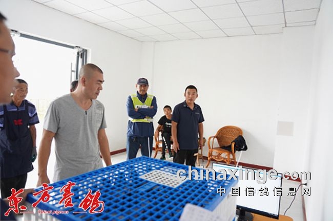 东方赛鸽小吴(中)在等鸽现场直播赛鸽归来。