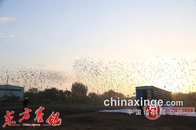 东部赛区:赛鸽向远方飞去