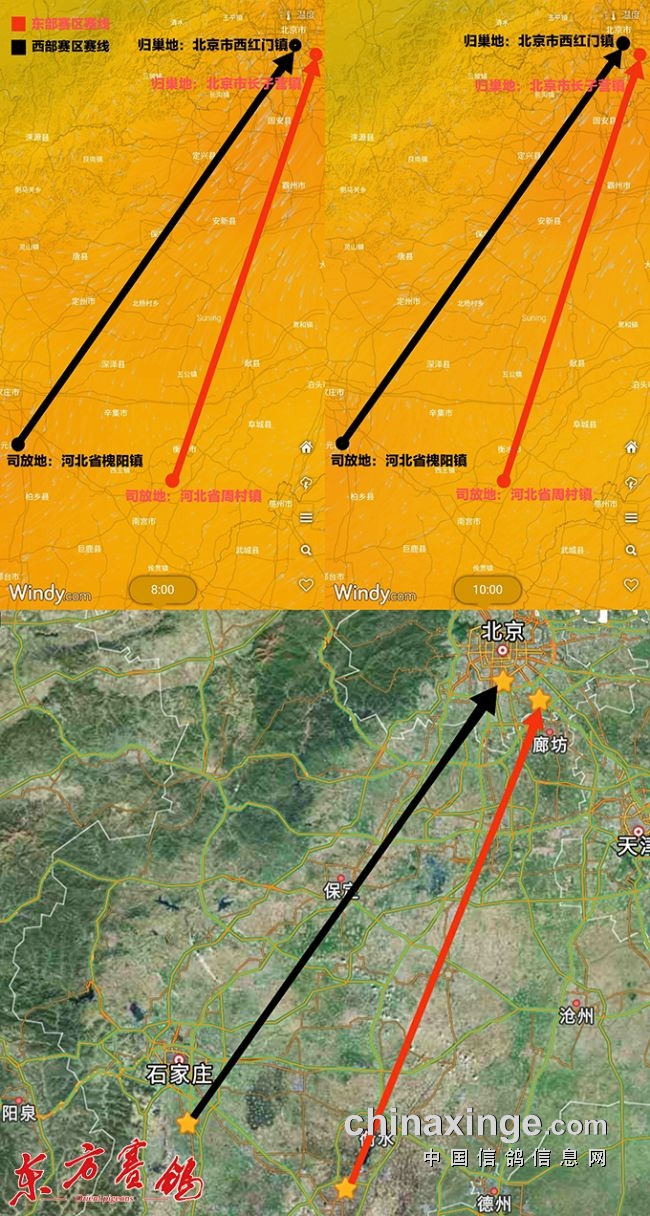 9月29日早上06点36分,西部赛区资格赛在河北省石家庄市元氏县槐阳镇(放飞地坐标为东经114°33′52.20″,北纬37°45′34.07″)放飞4245羽,放飞时天气晴朗,气温13℃,有1~2级东北风,能见度超5000米。