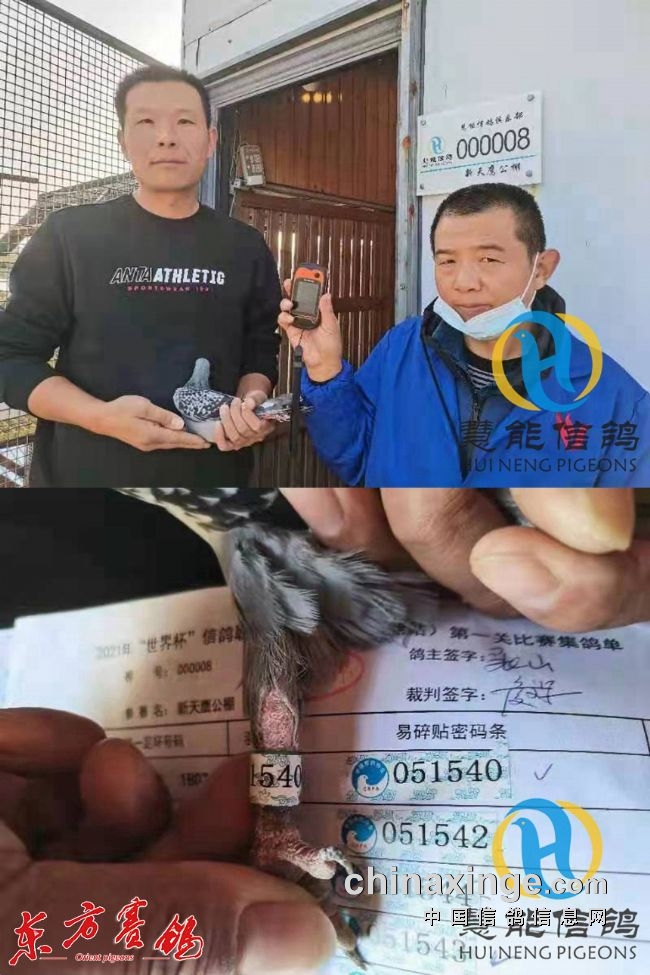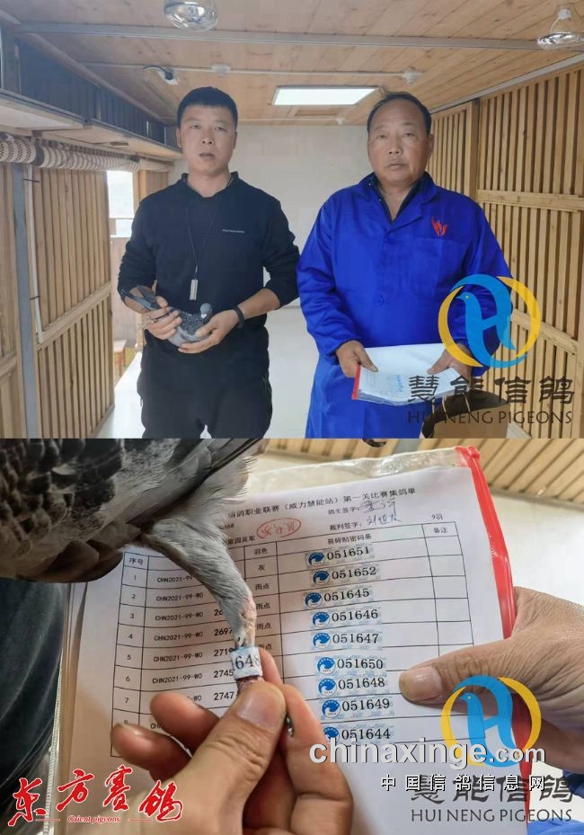 2021年10月18日,陕西威力慧能俱乐部以血战到底的气概,进行了2021年“世界杯”信鸽职业联赛(慧能威力站)第二关(榆林站),的比赛,本关集鸽160羽,于10月18日早上7:15分开笼放飞,司放地经纬度:东经:109°58′25.96″、北纬:38°58′49.73″,实际空距500.581公里,放飞地:晴,归巢地也是晴。当天14:36:30 见鸽,冠军分速1,143.2985米/分,当天17点55分止回来98羽,当天归巢率为61.25%。到19日中午,已回来115羽,归巢率为71.88%。