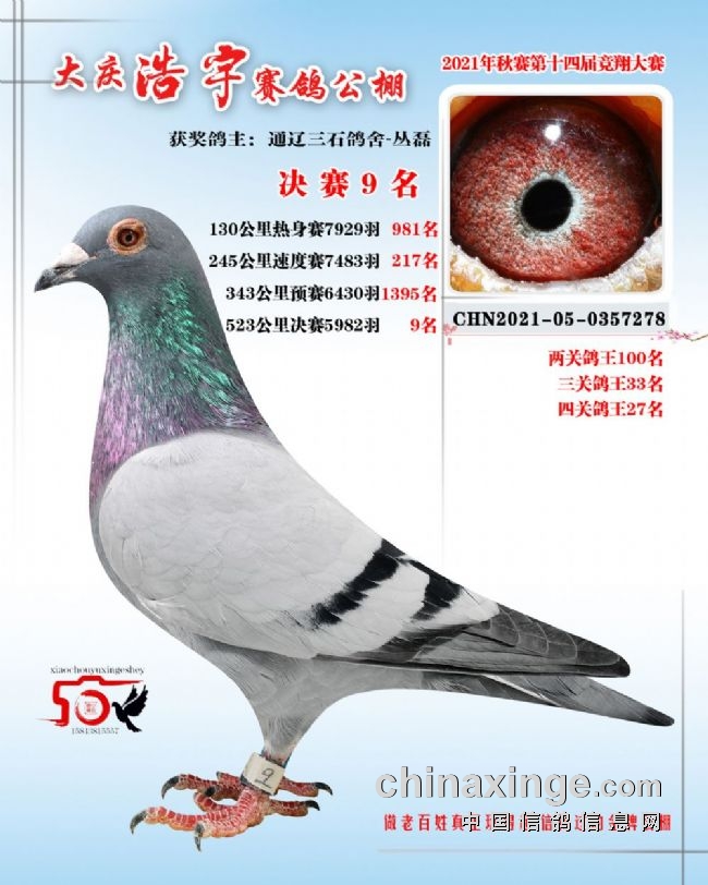 大庆浩宇赛鸽公棚2021年秋季决赛001—100名