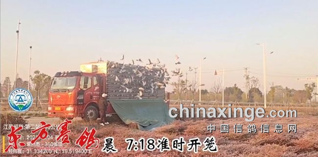 4日早上,放飞地江苏溧阳天气晴好,东南风2级,气温2级,空气:良,司放地是开阔田野,鸽车四周是郁郁葱葱的苗圃, 7:18分裁判长下达了开笼放飞指令,只见鸽子奋勇争先飞离鸽车,盘旋一圈后朝着北面徐州的家飞去。