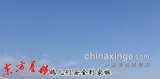 赛鸽飞行将近5个小时,12时刚过,只见从正南方飞来由12羽鸽子组成的先遣小分队,神速地降落公棚。