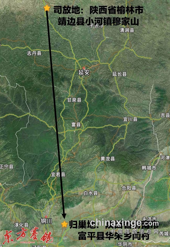 司放地位于陕西省榆林市靖边县小河镇穆家山,距公棚实测空距283.3公里。靖边县具有典型的陕北风情,这里热情豪放的大秧歌,高亢激昂的信天游,如泣如诉的陕北道情,细腻秀美的三边剪纸随处可见,形成一道独特靓丽的风景线。12月6日8点16分,气温零下4.1℃,西北风1级,旭日照亮了万里碧空,赛鸽们斗志昂扬踏上归程。
