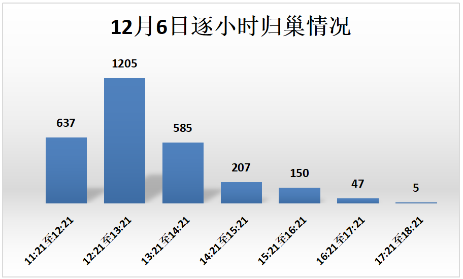 本关集鸽工作由中国信鸽协会和陕西省信鸽协会联合执裁,郁滨、曹树镇受中鸽协委派,分别担任裁判长和副裁判长。12月05日15:03至17:46,经逐羽扫描检录、加盖暗记章,集鸽工作在紧张有序的忙碌中结束,4068羽参赛健儿顺利集结完毕,当夜赶往司放地。