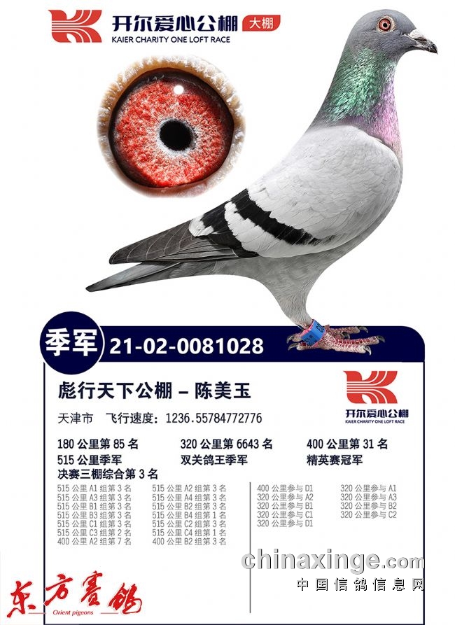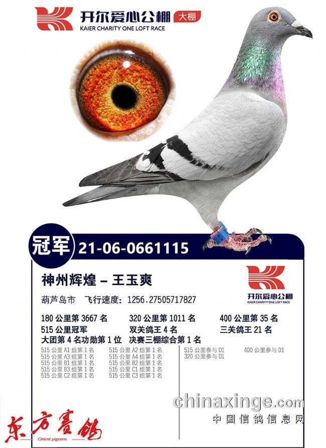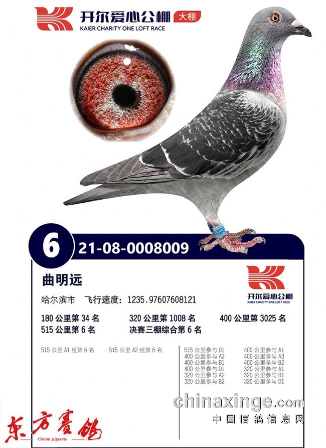 一、2021年是开尔六届赛事最艰难的一年,经过320公里大顶风,400公里大雾,515公里平飞的层层考验,做种价值大。现有很多鸽友咨询拍卖事宜,参与热情积极性很高,也有很多鸽友已选中自己心仪的爱鸽,早早在网络出价。建议大家务必提前充好保证金,保证正常出价(出价比例1:3)以免错失爱鸽。