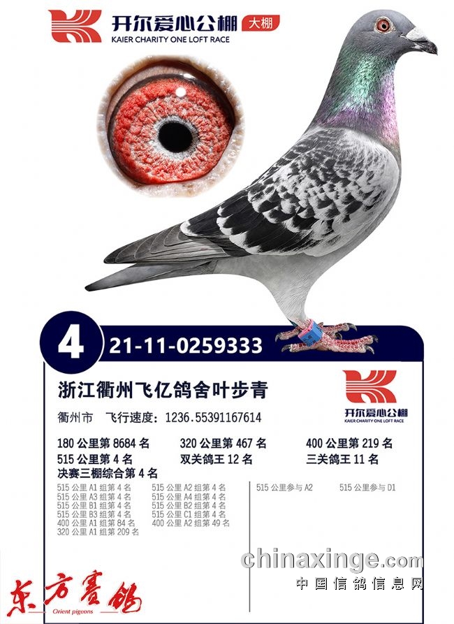 开尔公棚2200羽获奖战将他们上过高山,穿越大海,更是练就腾云驾雾的本领。经过层层关卡挑战,各种天气,各种困难都闯关成功,他们用实力和成绩证明了自己的价值,再加上开尔严格的多项诚信措施保证360°无作弊死角。21年开尔的获奖鸽是货真价实的王者。