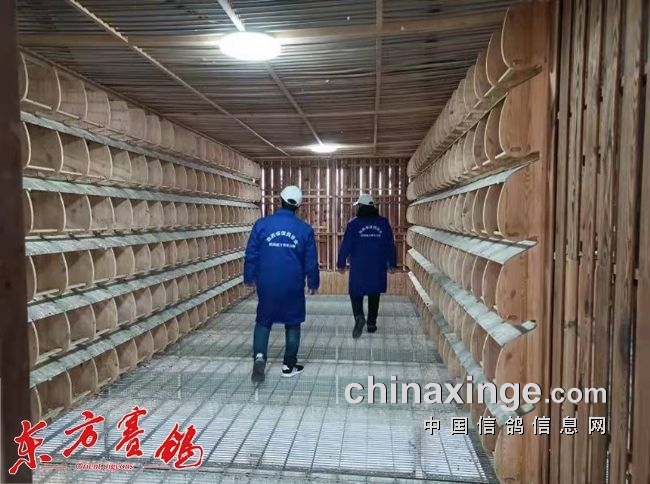 裁判员检查公棚看是否有漏赛的鸽子。