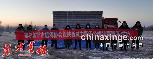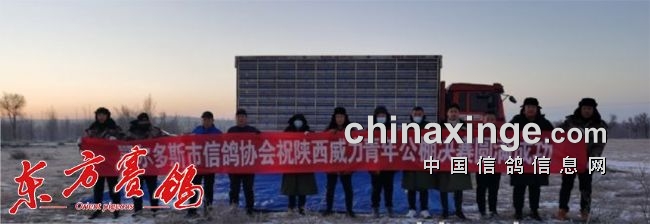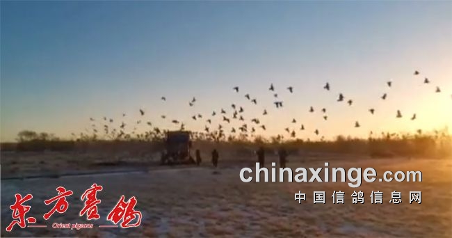 鄂尔多斯位于内蒙的南部,12日早上天气晴好,温度零下8°C, 西北风 2级,对往南飞的鸽子来说还是要有一个适应过程。早已憋足劲的小将们决心此次征战,要赛出内蒙彪悍的民族风格来。8:06分裁判长下达了开笼放飞的指令,3019羽鸽子迎着侧顺风飞向蓝天,在空中盘旋一圈形成一个集团,确定好方向后便径直飞往南部家乡——渭南。