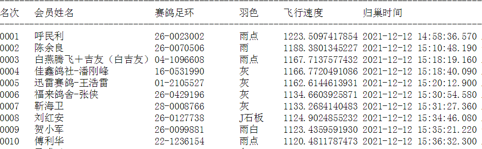 集鸽前电脑数据展示。