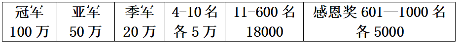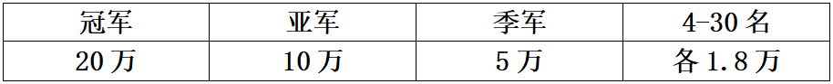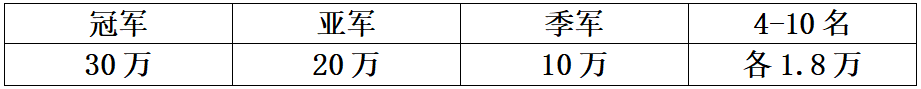第四关大团体赛奖金分配(前十名颁发奖杯)