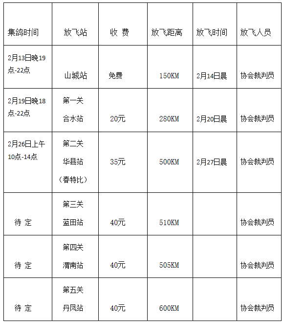 吴忠市信鸽协会2022年春季五关赛将于2月中旬启动,第一关于2月19日集鸽开赛,详细规程如下: