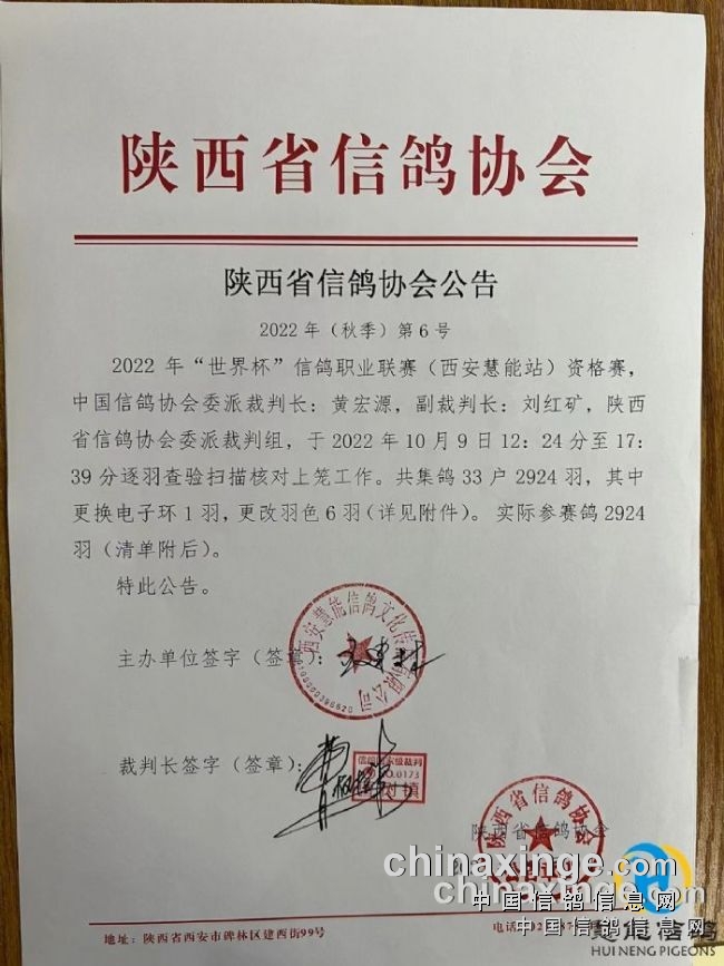 最后,预祝本次资格赛在中鸽协、省鸽会、中信网信鸽传媒、西安慧能信鸽俱乐部共同努力下取得圆满成功!祝所有的参赛鸽明天顺利归巢!