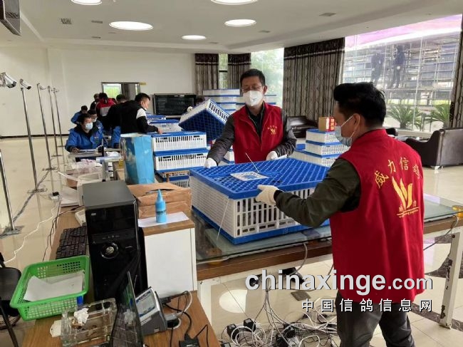 在集鸽现场的有西安慧能信鸽俱乐部总经理宦晓彬、副总经理王建,还有中鸽协委派的裁判长黄宏源、副裁判长刘红矿,陕西省信鸽协会委派裁判员负责集鸽、检录、司放、监放、验棚和成绩审定工作。