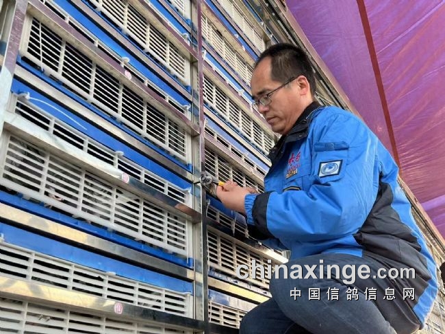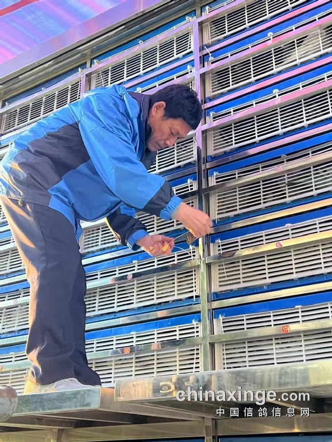 通过集鸽检录的鸽子装入集鸽笼,每笼25羽参赛鸽,之后每笼鸽子还要进行第二次扫描,再次核实每笼装鸽羽数和每羽鸽子足环号,鸽子在笼子内再通过大型扫描板扫描,自动检录笼内鸽子的足环号和羽数,以此避免了集鸽过程中漏扫鸽子的失误,做到精准到位,万无一失。最后各个团队再随机抽号决定笼号和载鸽车层次,全部集鸽环节公开、公正、透明和高要求。
