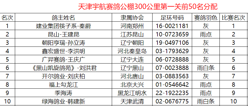 超越信鸽传媒+于海涛环号08-0357719的雨点鸽拿下季军,分速1148.32米/分。截至19日上午10时,共有近5000羽赛鸽归来,归巢率超56%,赛鸽仍在持续归巢中。