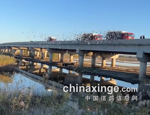 有山有水有大桥,有冠有亚有实力。10月18日,天津宇航赛鸽公棚400公里预赛在辽宁北镇顺利开笼,只见蓝天之下,几辆载鸽车在辽河大桥一字排开。上午7:02,司放员一声令下,8835羽小战士夺门而出,干净利落,目标明确朝着前方飞去,飘逸的身姿划过长空,在静谧的河面留下优美的倒影。