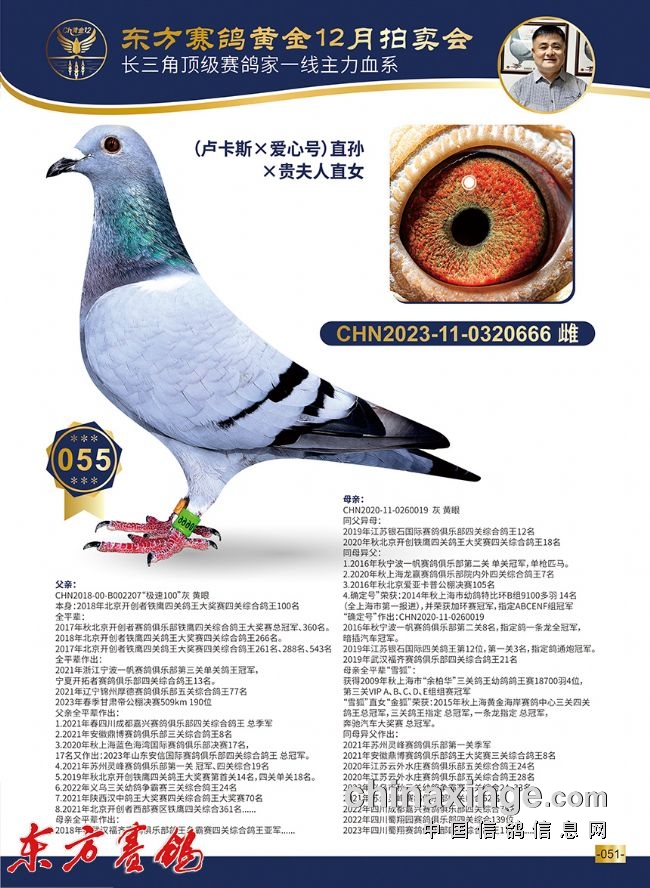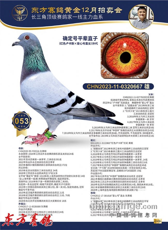 2023年四川嘉兴春赛鸽俱乐部四关综合60名;河南开封众胜(春)四关综合196名、首关冠军。