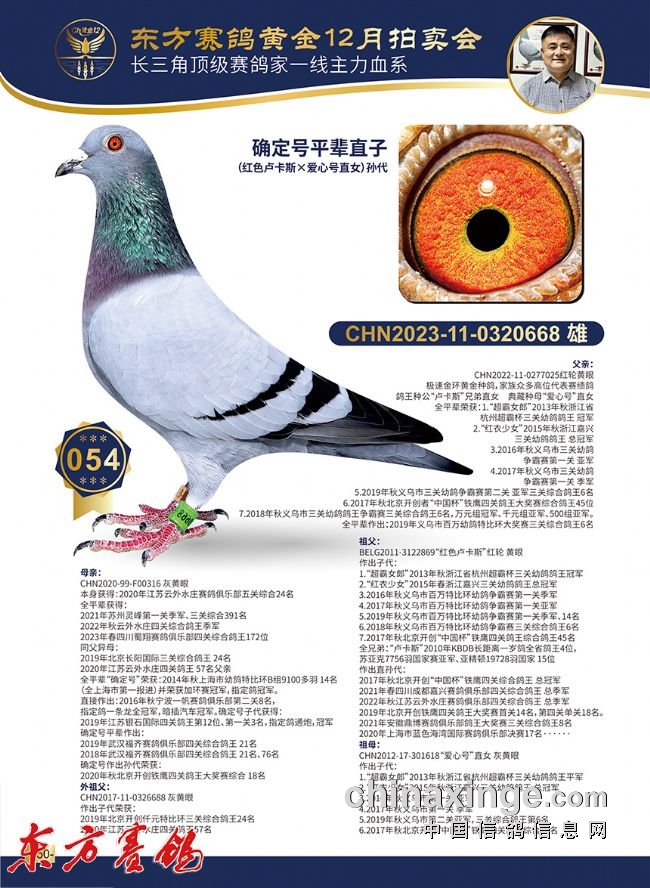 2020年江苏云外水庄五关综合鸽王24、28名;宁夏开拓者四关鸽王大奖赛综合13位);上海蓝色海湾决赛17名。