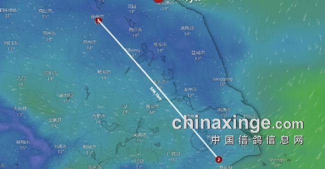 赛线与风向:江苏爱翔的东南赛线以其平原地形、湖泊水系密集,又有季风和多变气候为主要特点,对赛鸽的飞行能力和定向能力提出了较高的要求。华东地区受季风影响较大,本次归巢路线侧顺风。