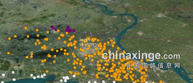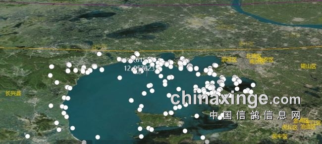 GPS轨迹预知鸽群走势:在桐乡市,鸽群走势分为三群结伴飞行,三个先锋队选择了不同的方式经过太湖,冠军鸽选择直穿而过,亚军与季军结伴沿太湖西岸线飞行,随后进入400公里空距范围,此时有鸽群选择靖江市方向横穿长江,并向东海岸方向持续飞行,这意味着会绕远路。冠军梯队选择从仪征市方向飞跃长江,沿着最佳理想赛线继续飞行,随后横穿洪泽湖,到达300公里空距范围内,沿直线飞行进入100公里空距范围,根据定位记录数据显示,此刻冠军鸽以1200米/分速度抵达了50公里空距决赛圈,与亚军、季军短暂会面后,又独自选择直线距离归巢,领先亚军4分钟。