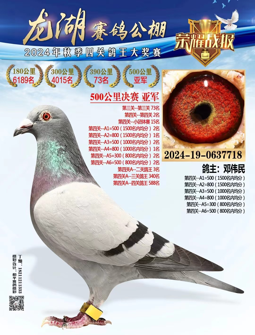计数上的错,是写手激动之余的错,诚心接受鸽友指正,却不打算修改小文,意在警醒自己。但,错不及鸽主,尤其这只多年冠军基因的后代,在公棚赛上终于崭露头角,狠评写手之时,请继续欣赏这只预赛73名,决赛亚军的鸽子。——大少爷的剑