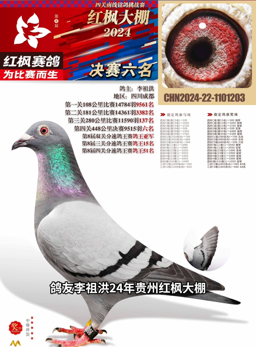 鸽友李祖洪贵州红枫大棚双关鸽王亚军,三关鸽王15名,第四关决赛448公里6名