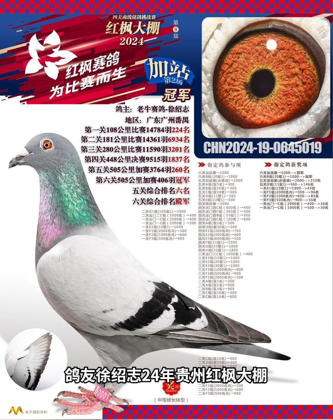 鸽友徐绍志贵州红枫大棚加站赛第二关505公里冠军