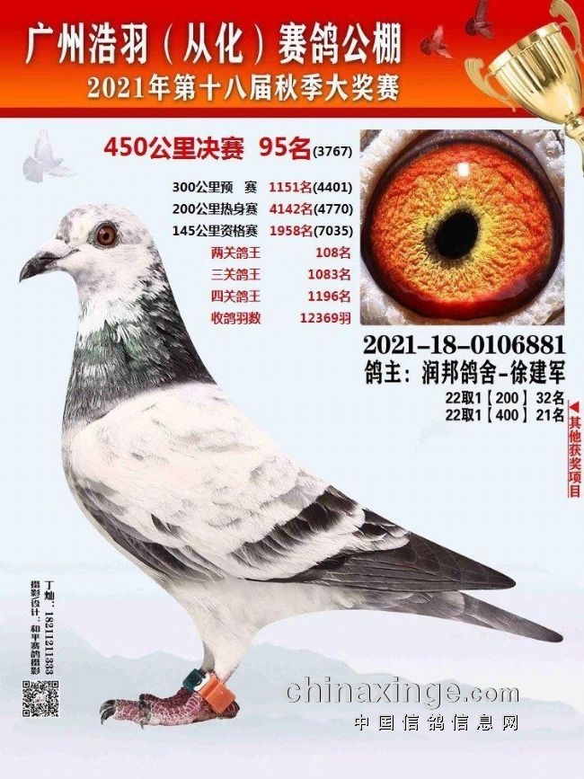 21年浩羽从化公棚决赛 95名(3767羽)——幸运95(雷神直子)