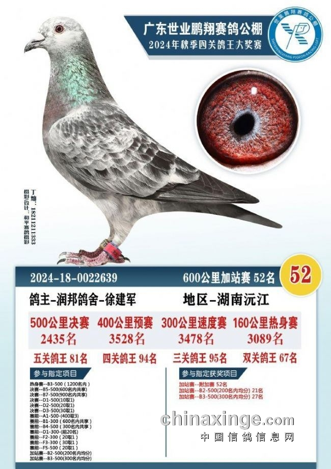 24年世业鹏翔公棚加赛 52名(2175羽)——苍箭(雷神直子)