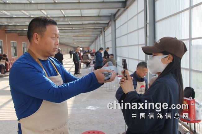 大明宫春棚探视前鸽友不用交费,但是,探视后看见鸽友们在排队交费,成为一道靓丽的风景线。安徽一位鸽友说:“他来看了24羽鸽子,其中16羽非常好,只有一羽鸽子差一点,参赛费全部交了,心里踏实!”