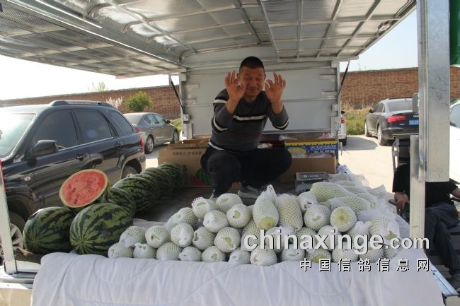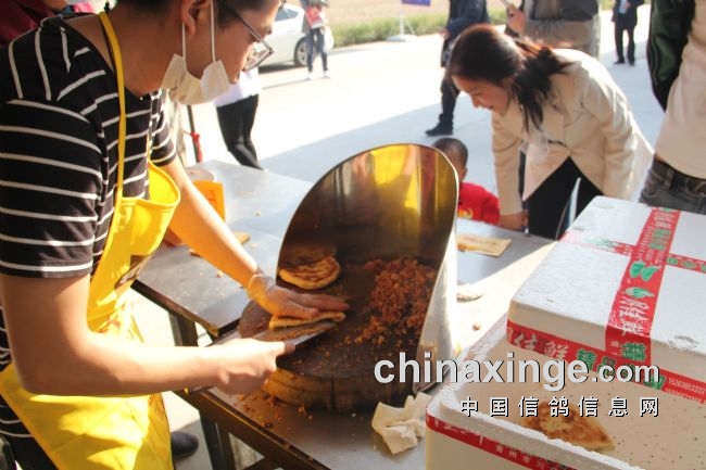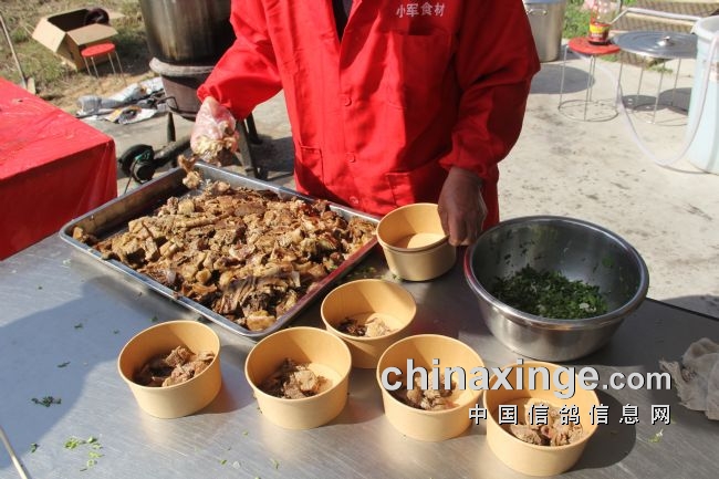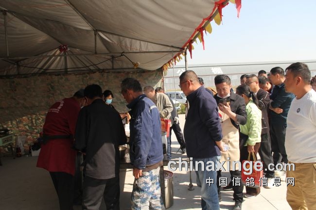 公棚在现场搭起了餐饮大棚,给每一位探视鸽友赠送一件礼物,里面装有“大明宫信鸽”的围兜、笔记本、签字笔、保温杯等礼物,午餐有陕西肉夹馍、羊肉汤,据说准备了十几只羊肉、几百斤猪肉,院子内还摆放有大荔农场西瓜和香瓜,真是中端公棚高端接待,温馨热情,给大明宫春棚点赞。