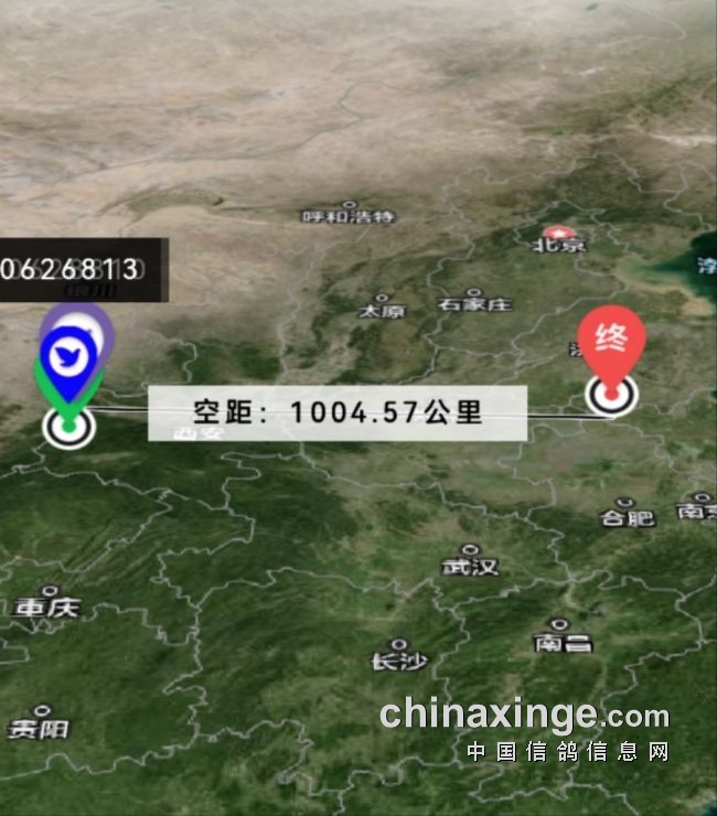 5月14日早晨6:12在甘肃天水放出,空距1005公里,本次1000公里天水比赛,将为两羽导航鸽佩戴GPS,实时监测鸽群走向,掌握赛鸽动态,最后预祝本次比赛圆满成功爱鸽顺利归巢。