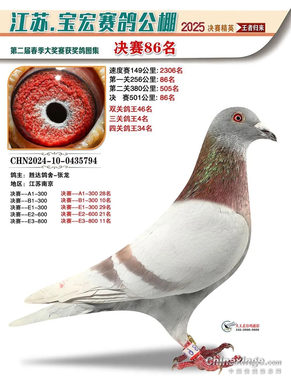 8.江苏宝宏三关鸽王4名:红绛表现出色