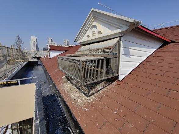 记者了解到,自2014年罗秀新村小区完成“平改坡”改造后,10号楼6楼顶层就被一位老人改造成了约60平方米的鸽舍,饲养了近200只信鸽,还侵占相邻3栋楼顶堆放饲料、工具。鸽粪长期堆积导致9-12号楼顶防水层受损,11号6楼住户家中墙皮霉变、棚顶脱落。