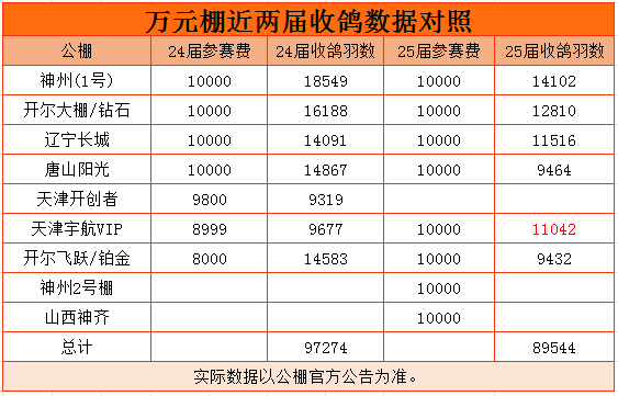 当前,全国秋棚收鸽工作已基本结束。据网友统计,今年秋棚万元棚收鸽数量整体下降,收鸽数量较去年将近下跌一万羽。然而,各地秋棚整体收鸽总羽数却呈现出上升态势。这一反差或许表明,相较于高额参赛费用,更为亲民的参赛门槛更受广大鸽友的欢迎,也更具吸引力。