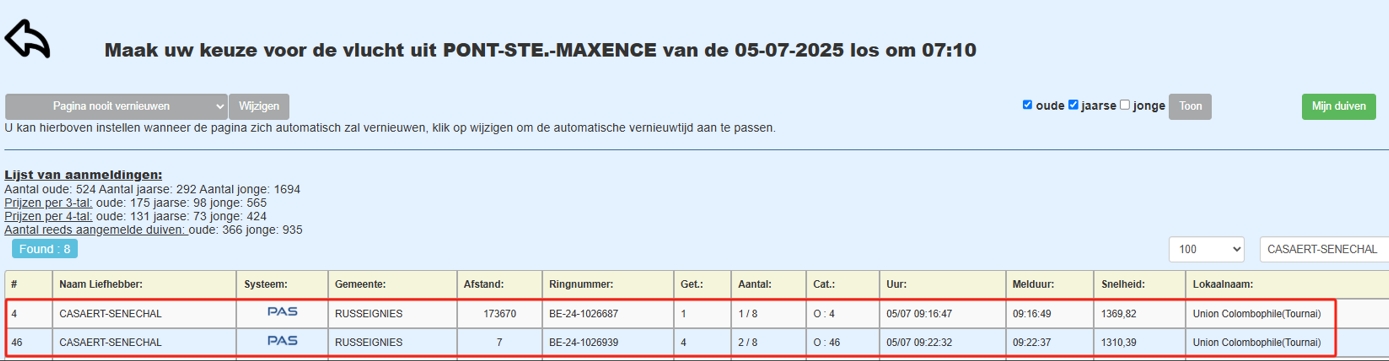 在刚刚结束的蓬圣麦森斯173公里地方赛中,开尔欧赛战队再获殊荣,获成鸽组殿军,幼鸽组8、13、17、46、48名。前十进二,前50进6。