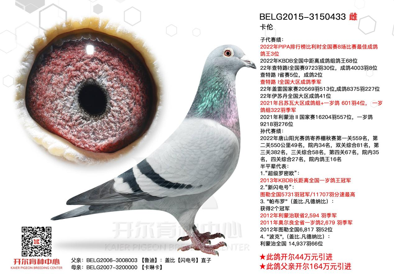 9名的母亲是卡伦直女,鲁迪与卡琳卡的女儿,9名此前亦斩获苏瓦松201公里一岁鸽10位。