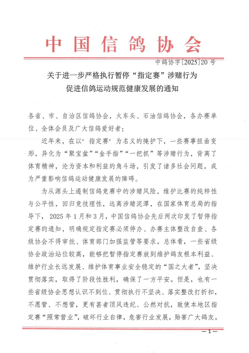 真是干体育的出身 ?讲了多少次了,指定是堵博是违法 !还在使用 “暂停 ”,中国信鸽协会你是傻啊 !