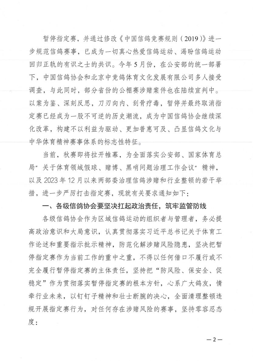 关于进一步严格执行暂停“指定赛”涉赌行为的通知