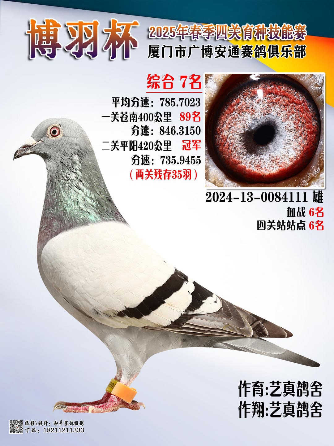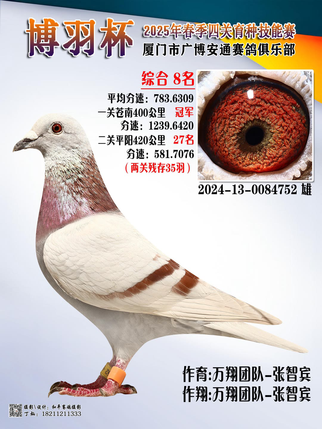 2025年厦门广博安通信鸽俱乐部春季“博羽杯”四关赛,两羽花鸽勇夺头彩。本届赛事原设四关,但因平阳站折损羽数过多,因此止步于此。本届仅完成首关400公里苍南站和第二关420公里平阳站的比赛,两关过后共有35羽赛鸽残存。