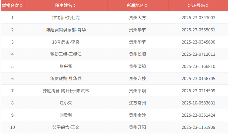 归巢消息:钟锡新+刘仕龙的2025-23-0343003雨点获冠军,分速1361.8344米/分;博翔赛鸽俱乐部-肖华的2025-23-0555061灰获亚军,分速1360.7639米/分;18号鸽舍-李贲的2025-23-0345690获季军。截至8点55分,八成赛鸽已经归巢。