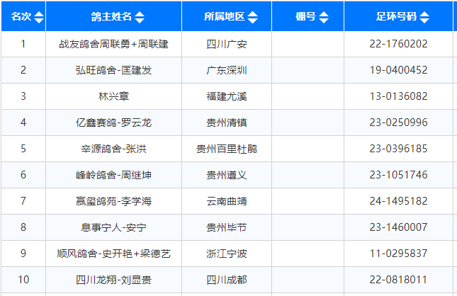 开笼时天气是个挑战,现场起雾,且局部地区伴有小雨。但小将们依旧奋勇归巢。8点左右,赛鸽开始大批量归巢。战友鸽舍周联勇+周联建的22-1760202灰,以1290.8326米/分的分速获得冠军;鸽友弘旺鸽舍-匡建发的19-0400452雨花获亚军;林兴章获季军。本关归巢十分顺利,共有96%的赛鸽都正常归巢,本次资格赛喜获开门红。